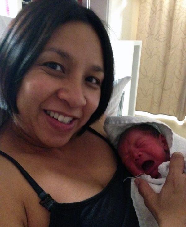 Here’s a picture of your beautiful mommy carrying a crying you, at birth:)