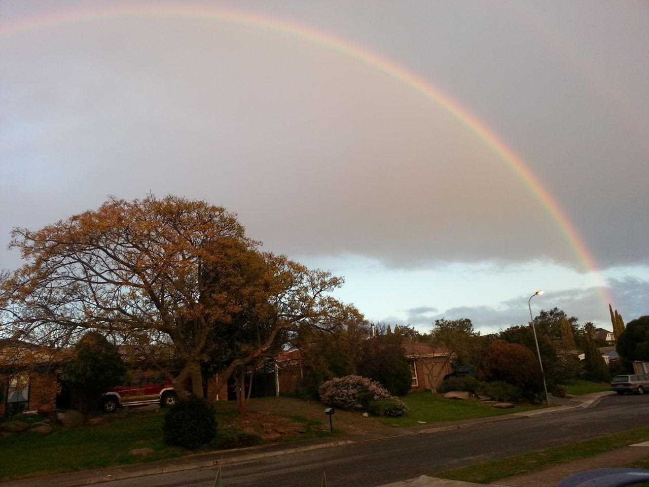 In the evening on the day you were born, Daddy and Mommy were journeying home from Uncle Kenny and Aunty Gwen’s house when they saw two rainbows painted across the sky.